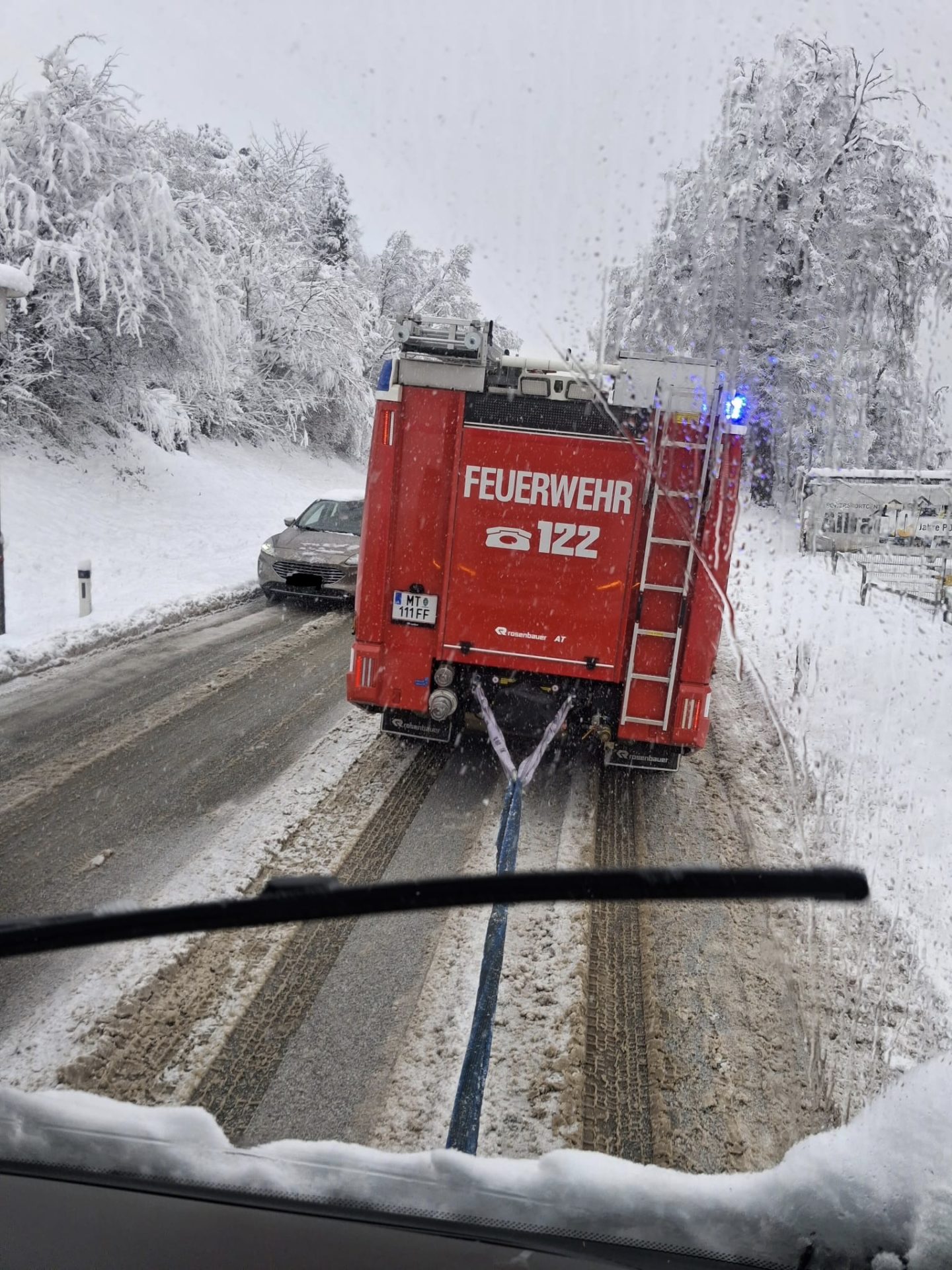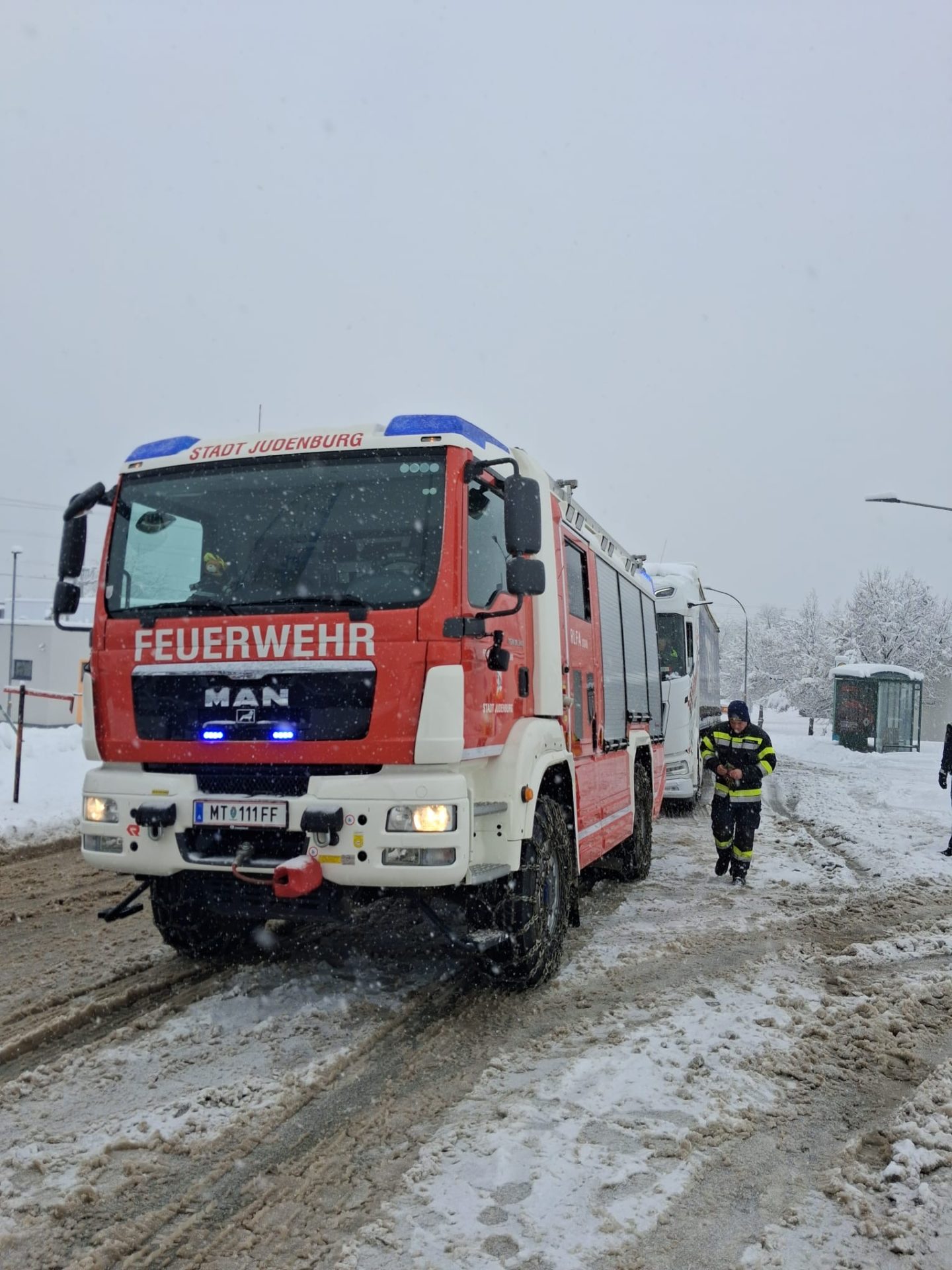 Gestern in den Mittagsstunden wurden wir zu LKW-Bergungen gerufen. Aufgrund der schneebedeckten Straße konnten sich die Fahrzeuge nicht mehr eigenständig fortbewegen.