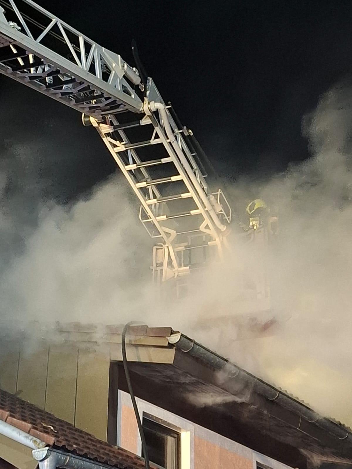 Doch eine intensive Nacht stand uns noch bevor: In der Nacht auf Freitag wurden wir zu einem Dachstuhlbrand nach Zeltweg alarmiert. Unsere Aufgabe bestand darin, mithilfe der Drehleiter einen gezielten Außenangriff durchzuführen.