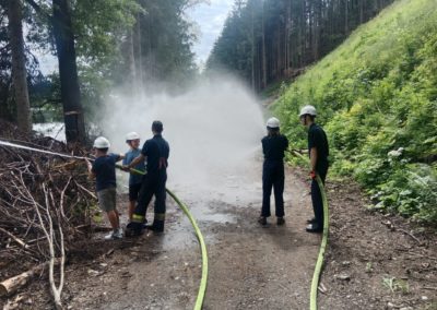 Die erste Aufgabenstellung, gemeinsam eine Saugleitung herzustellen, konnten die jungen Kameraden & Kameradinnen schnell meistern. Im weiteren Verlauf stellte die Gruppe eine Löschleitung her. Mit dieser probierten sie unterschiedliche wasserführende Armaturen aus: