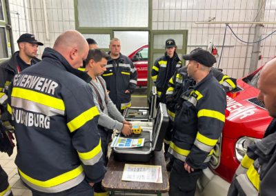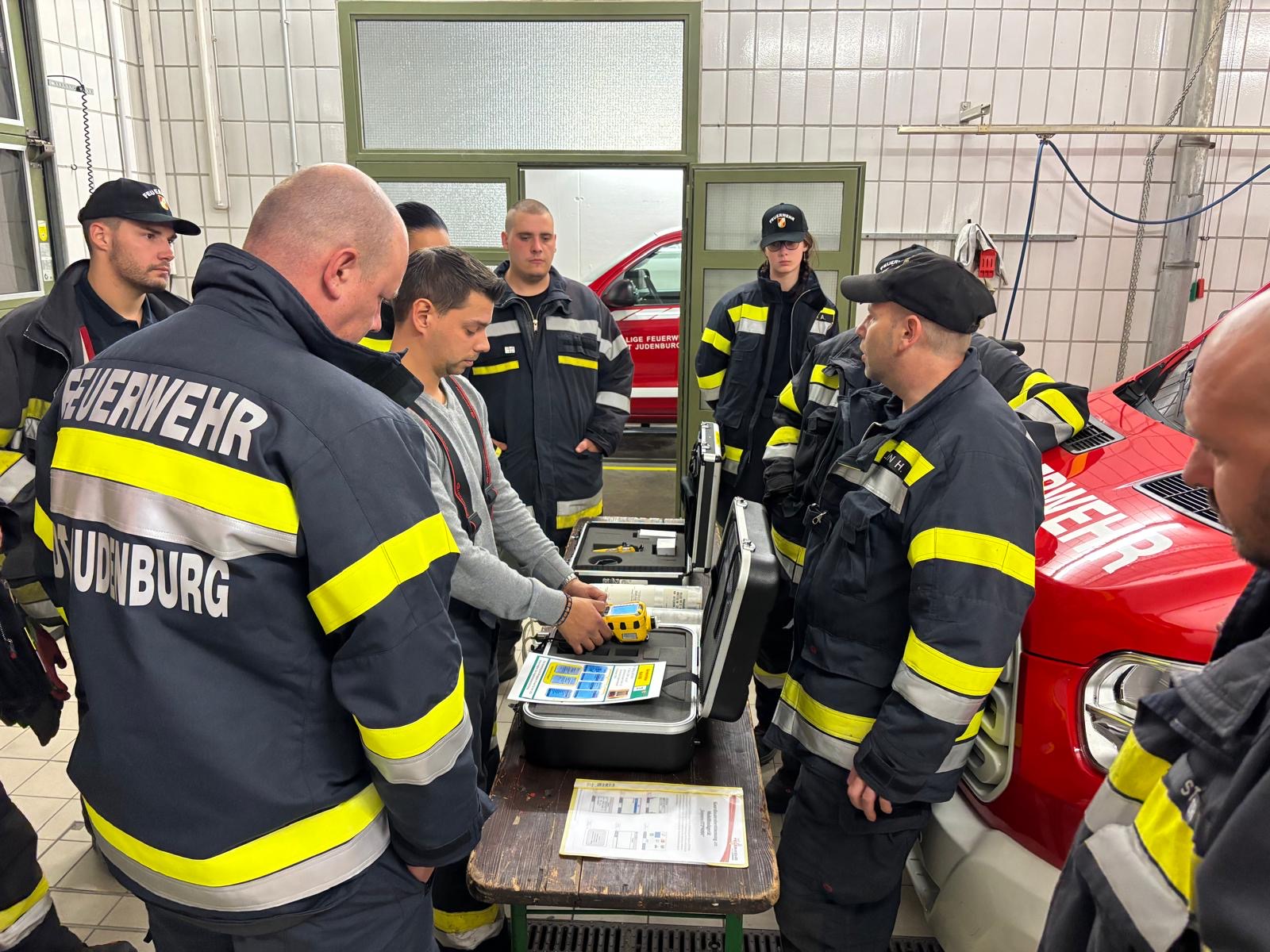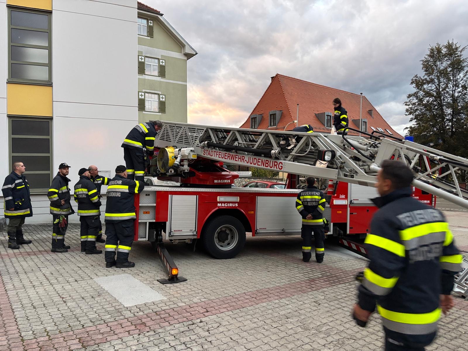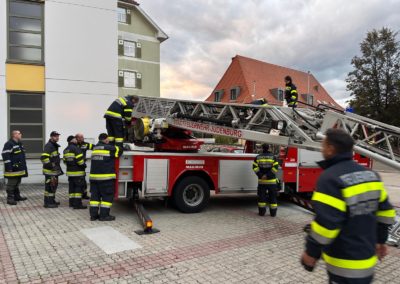 Bei der vergangenen Gesamtübung am Freitag wurden sowohl die Handhabung unserer Messgeräte als auch der Einsatz unserer Drehleiter DLK 23/12 insgesamt durchgenommen. Dabei wurde unter anderem das Anbringen und die Verwendung der Zusatzgeräte für die Drehleiter geübt.