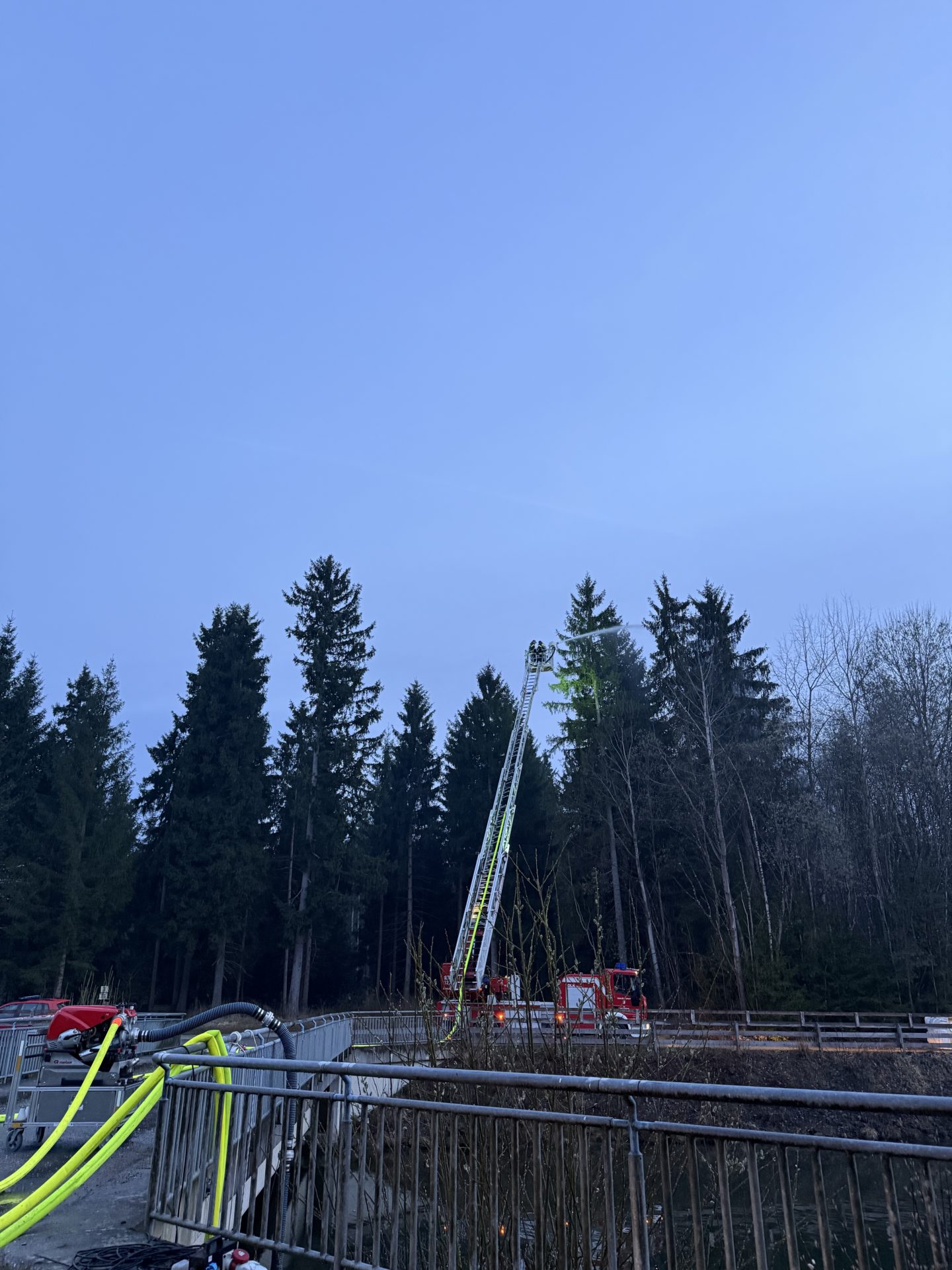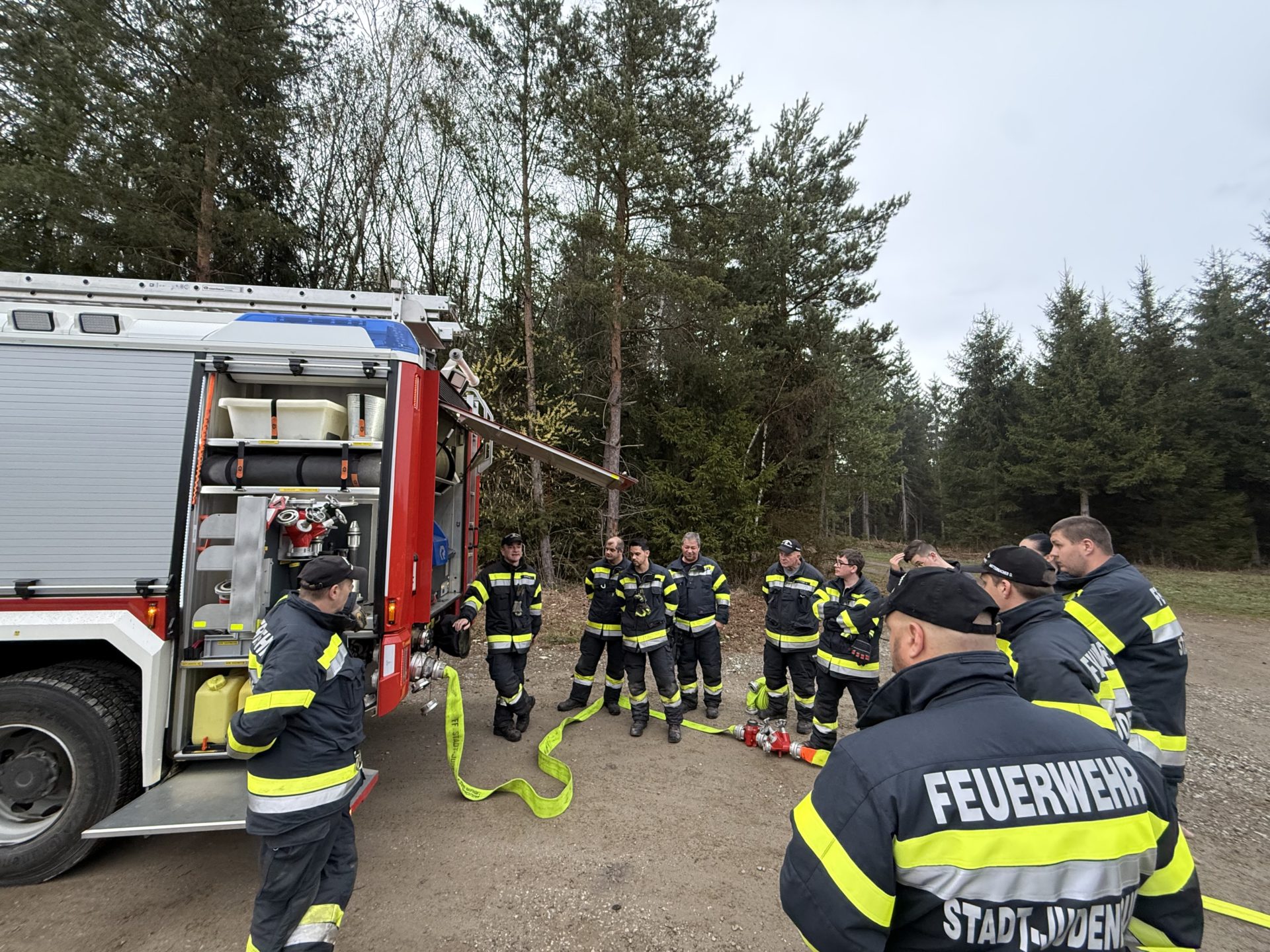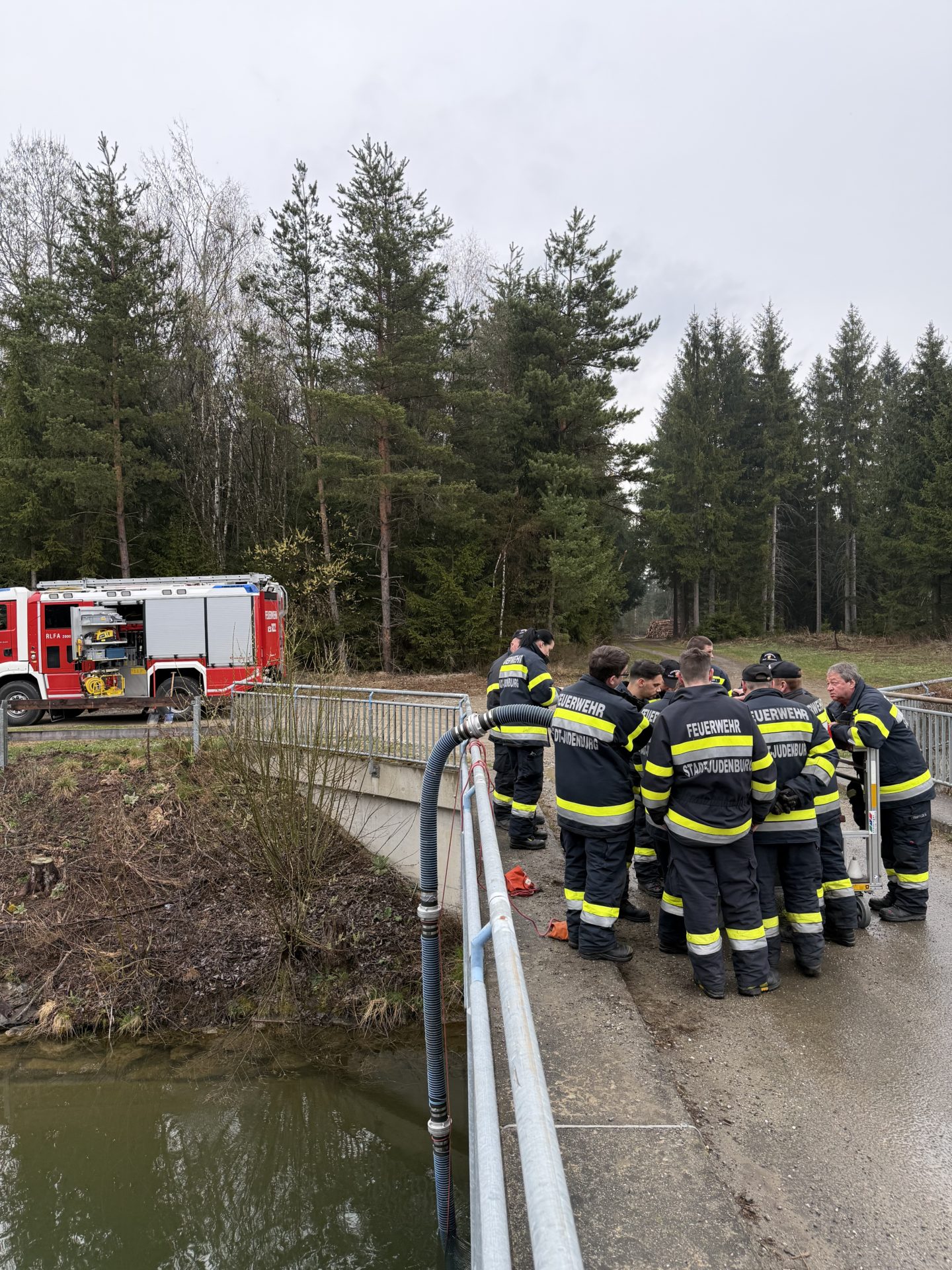 Am Freitag führten wir eine Übung zur Wasserförderung bzw. -entnahme in Fisching durch. Die Wasserentnahme erfolgte über die Tragkraftspritze (TS), unterstützt durch zwei Tauchpumpen, um eine ausreichende Wasserversorgung sicherzustellen.
